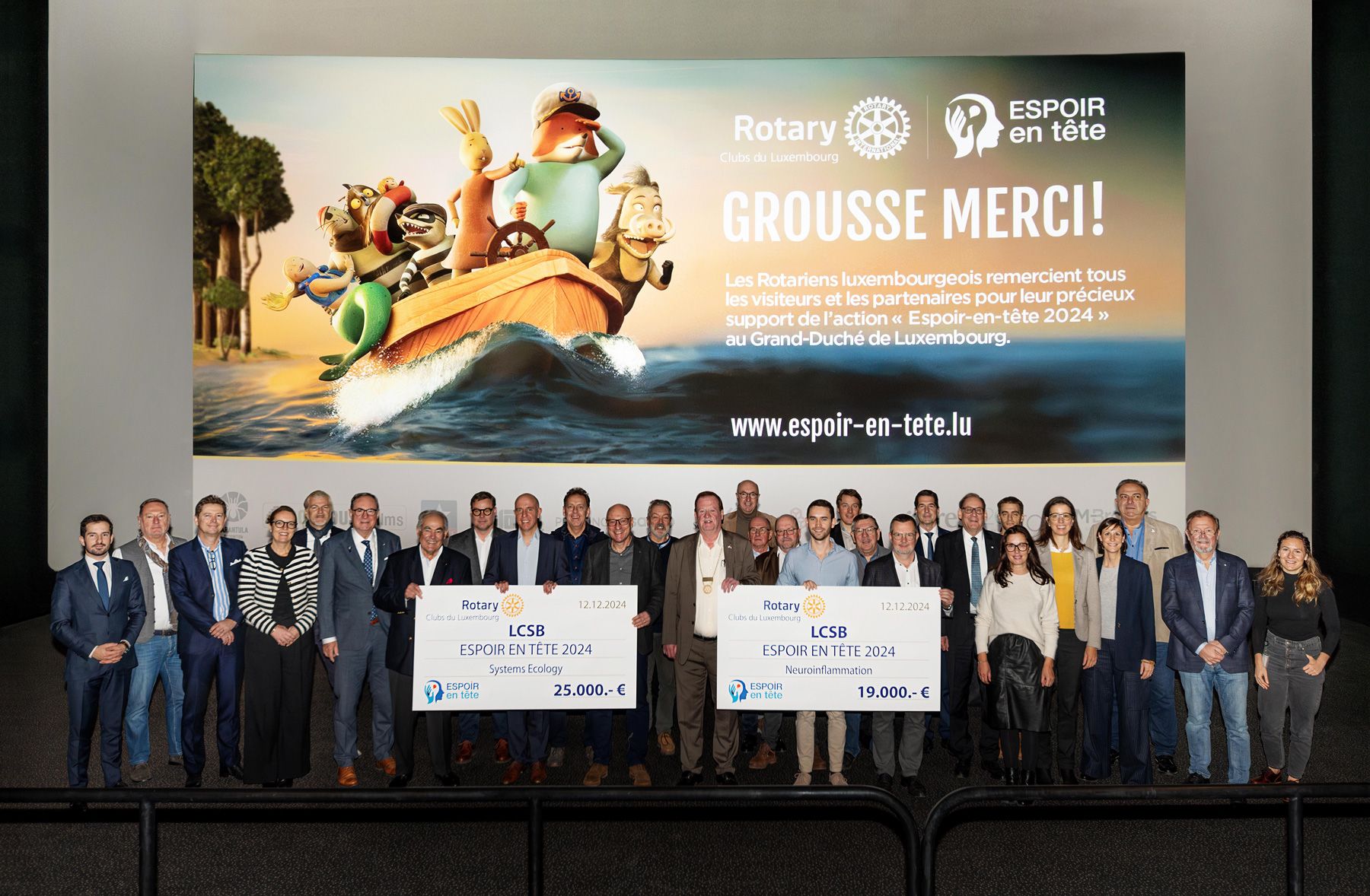 Pour la 7e année consécutive, l’action Espoir en tête, initiée par les Rotary Clubs luxembourgeois, a permis de récolter des dons en organisant des avant-premières ou projections d’exception dans les cinémas Utopolis/Kinepolis. 3 640 spectateurs étaient présents, ils ont ainsi à nouveau pu contribuer à la recherche sur le cerveau au Luxembourg. Durant ces 7 années, le projet Espoir en tête a pu récolter des dons pour un total de 326 000 €.
